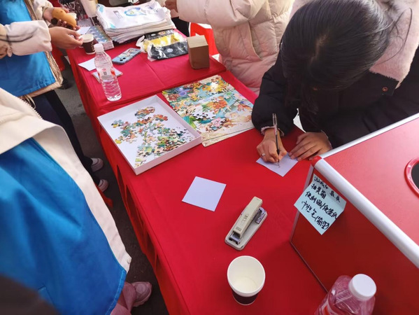 活动现场热闹非凡,四个环节兼具趣味与深意,让同学们在互动中感悟宽容力量。“宽容拼图大赛”上,2-3人小组迅速围坐,指尖翻飞分拣碎片、分工比对图案,不时交流思路、互相鼓劲。这场协作让大家在互补中完成挑战,更让包容互助的理念在并肩作战中悄然扎根,学会在分歧中寻求共识。“纸杯抽抽乐”中,参与者屏息凝神拉扯纸片,成功时喝彩四起,失手时笑言再战,氛围紧张又欢乐。看似简单的游戏暗藏哲思,让同学们领悟“宽容需从容,急躁难成事”,学会以平和心态面对不确定性。“宽容许愿瓶”环节温情涌动,同学们写下心结投入纸盒,抽取后真诚分享感悟,传递理解与释然。陌生心灵在倾听中产生共鸣,既释放了内心压力,也懂得了换位思考的重要性。“宽容投壶”将氛围推向高潮,大家排起长队凝神瞄准,互相支招调整姿势,命中时欢呼雀跃,未中也坦然一笑。这场趣味竞技让同学们在欢乐中接纳得失与不完美,学会以豁达心态面对生活中的“未命中”,涵养包容气度。