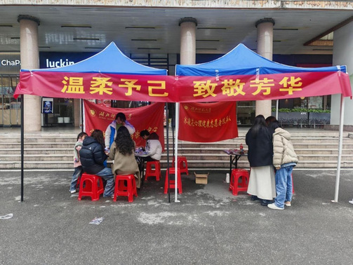 春风送暖,芳华绽放。在第116个国际劳动妇女节来临之际,为关爱师生心理健康,传递自我接纳、温柔自爱的理念。2026年3月8日,湖北师范大学青年志愿者协会冰凌花心理健康志愿者服务队(以下简称“冰凌花队”)在湖师大道开展“温柔予己,致敬芳华”主题活动,通过丰富互动舒缓心理压力、增强自我认同,营造积极温暖的校园文化氛围。