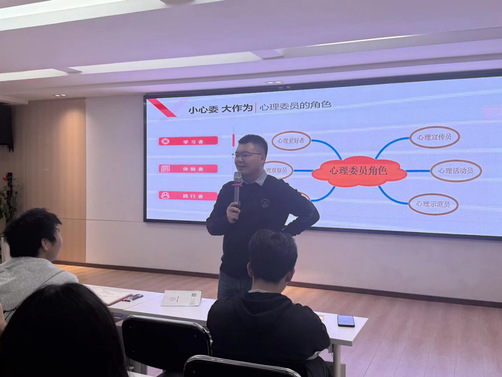 培训伊始,学工部副部长、心理中心主任邓黎崇向全体同学介绍了本次培训的目的及流程,并对本届心委提出期望与鼓励,希望大家能够热爱心委这个岗位并做好后续工作。培训第一讲,余金聪教授讲授题为《小心委,大作为》的讲座向大家传授心理委员工作职责与技巧,余教授以有趣的互动开场,通过提问“你选择担任心理委员的初衷是什么”让各位心理委员进行思考。接着他从心理委员制度、特质以及心理委员日常可做之事几个方面进行讲授,通过真实的案例分析让各位心理委员更加明确自己的职责所在,更好地做好未来的工作,同学们反响热烈且互动积极。